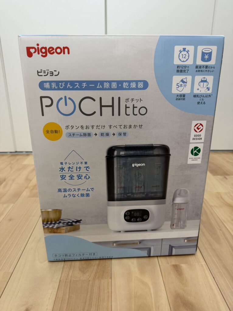 わが家ではピジョンの哺乳瓶消毒器「POCHItto(ポチっと)」を使っています。